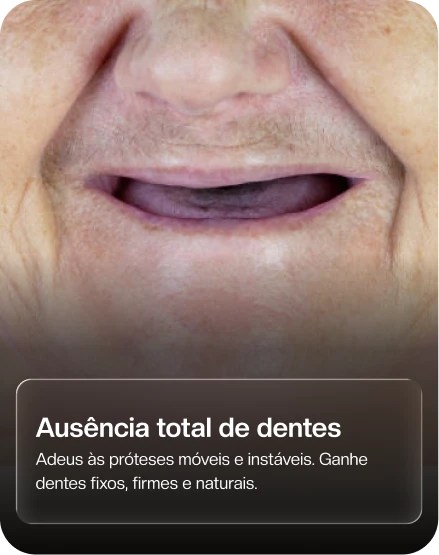 Com tecnologia de ponta e técnicas minimamente invasivas, você conquista dentes fixos e naturais em poucas horas – sem traumas, complicações ou longos períodos de recuperação.